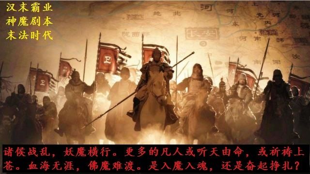 故事发生在195年,董卓火烧洛阳逃往长安,不甘心失败,被魔孽所惑,在西北塞外寻找上古魔族封印,魔族借助董卓的力量奴役人族。妖魔们念念不忘,希望有一天可以回到中原富饶之地,统治天下。袁绍自大的以为可以控制死亡的力量统一天下,也在积极寻找上古魂族的封印。历史自此走向了另外一个拐角。