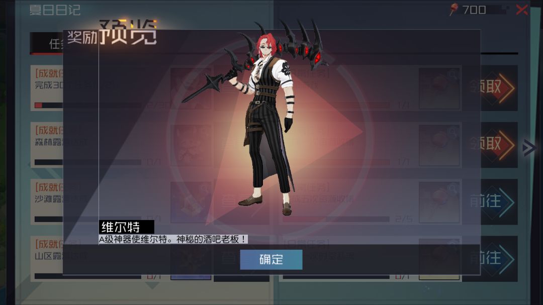 通过完成夏日日记中的任务,可获得A级神器使「维尔特」、逆光墨镜、名片夹·「拿不稳!」、S级记忆结晶·虚、A级记忆结晶·虚、苹果糖等丰厚奖励。