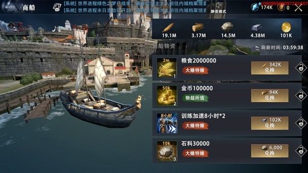 如果资源不充足,则可根据自己的需求进行兑换。比如领主的石料较多,商船刷新后,若有石料可兑换的其他资源,领主可优先兑换。