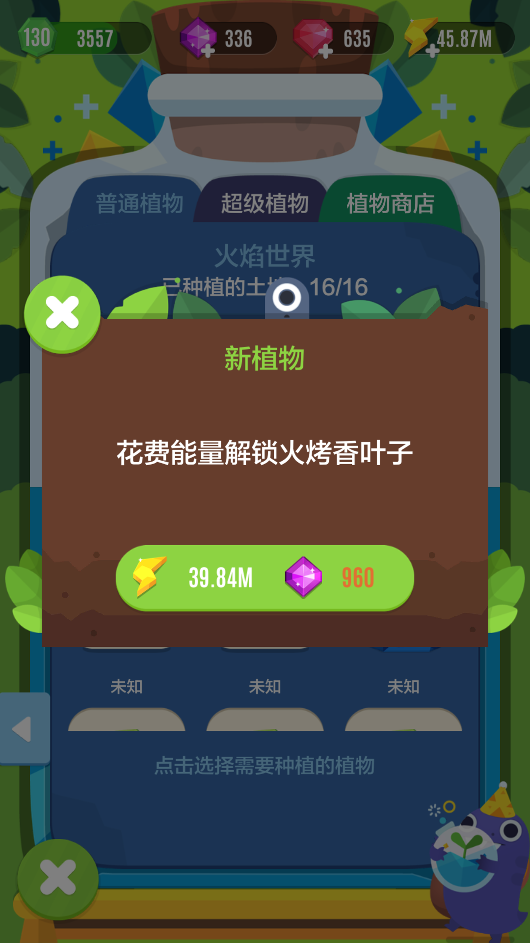 只解锁了一个植物,第七世界植物一上来就要600多个紫石头……真心养不起了