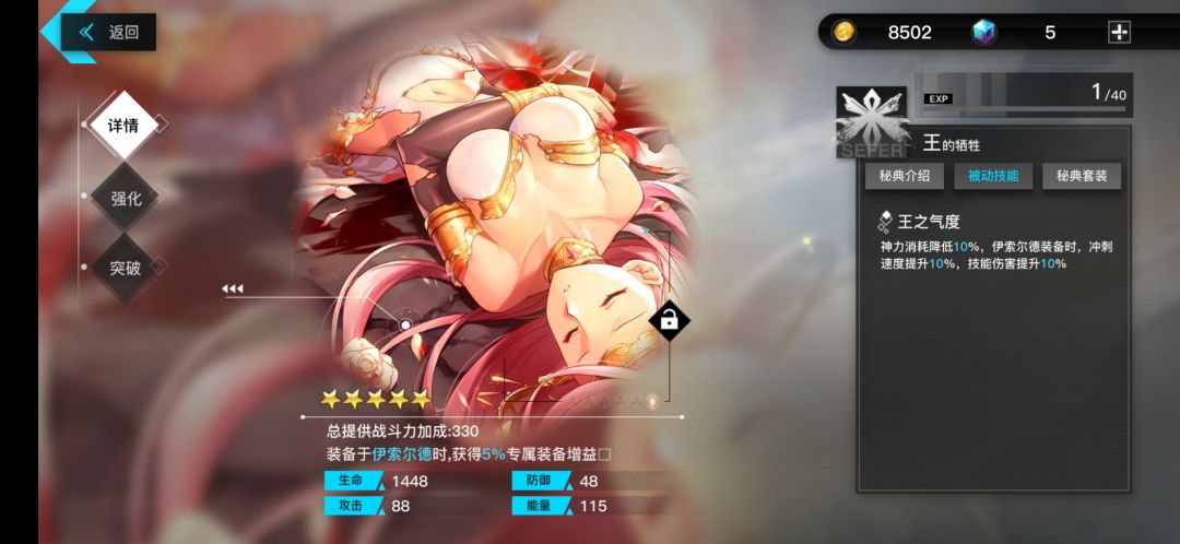 5件:获得神力解放能量增加30%,神力解放伤害提升30%