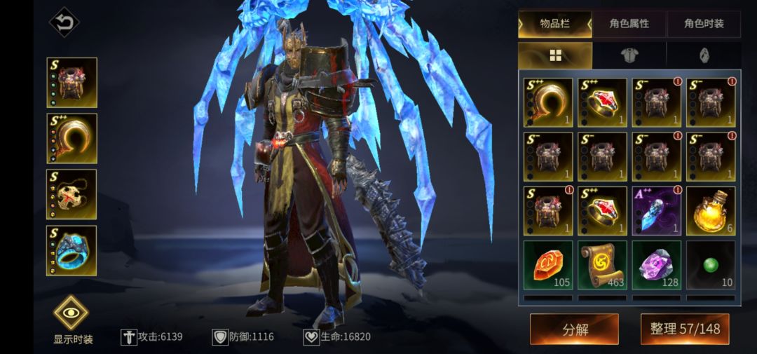 第五章武器戒指选择勇者试炼通关的王者装备,刷多几次,尽量挑写随机属性好的,满强化,镶满宝石,胸甲和项链就去地精贸易商直接购买大师装备,这个属性是这章最好。
