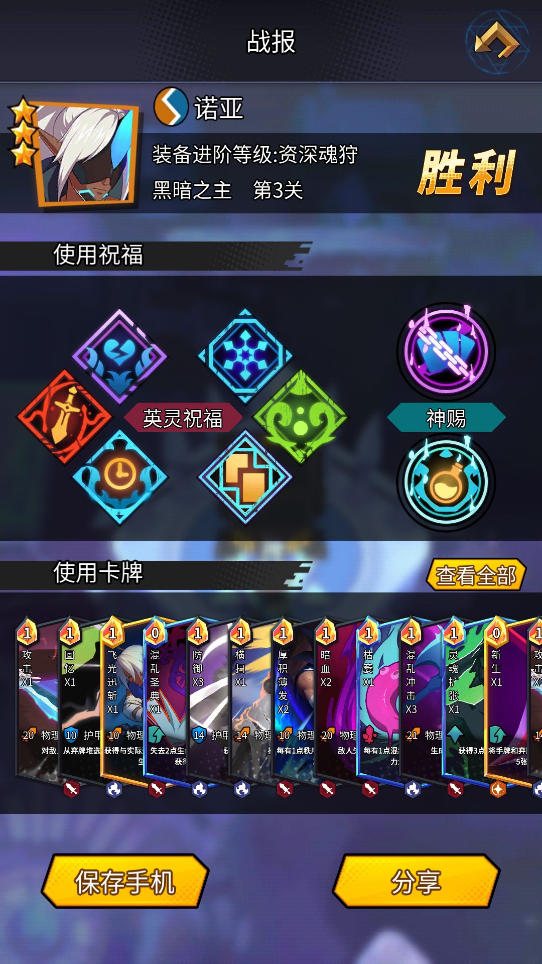 在我的卡特琳无数次倒在第一关boss的时候我果断放弃了我本命黑妹换了诺亚,可是脸太黑,第一关boss神赐一个护甲保留一半,一个无法看见意图,一个枷锁,wtf?玩我呢??看在给我一张秋风落叶又不想重新开始的前提下无奈自上枷锁,即使这样依然阻挡不了我,第十章被大家无限吐槽的第二关鹿头在诺亚面前就是弟弟,弟中弟!!诺亚根本不用攻击牌就能弄死你,加上无比强大的回血,boss基本很难秒掉你(第二关还是刷1000金币稳一点)