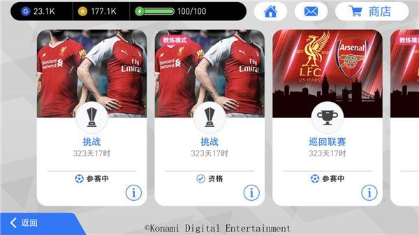 与此同时,作为一款强调竞技性的足球手游,《实况足球》手游在游戏模式部分,同样为玩家提供了丰富的挑战竞技选择。