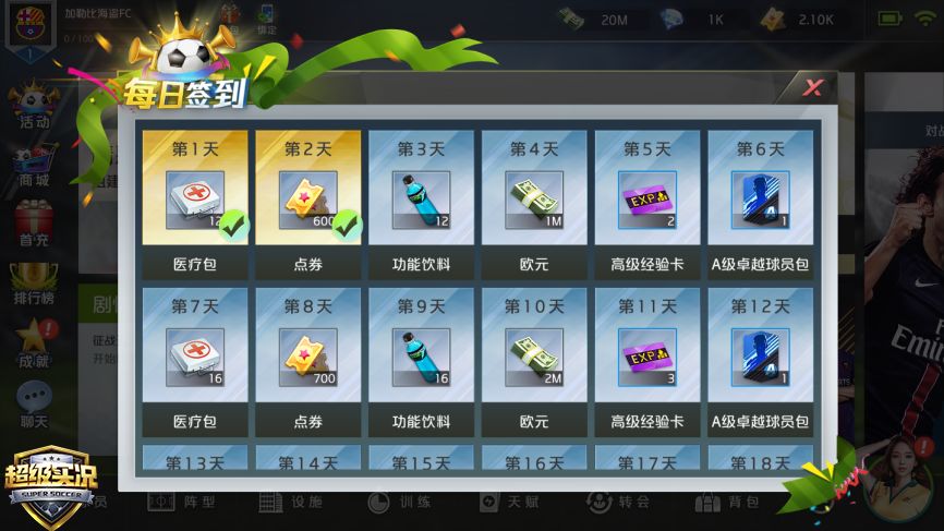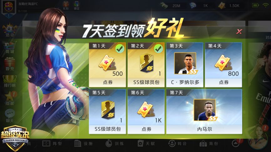 同时,首测期间,《超级实况》还为各位足球爱好者准备了丰厚的福利!签到就送C罗、内马尔两位世界足坛顶级射手,为你的梦幻阵容增添无限的进攻火力,点券、钻石、功能道具更是拿到手软,让你轻轻松松打造专属自己的豪门俱乐部!