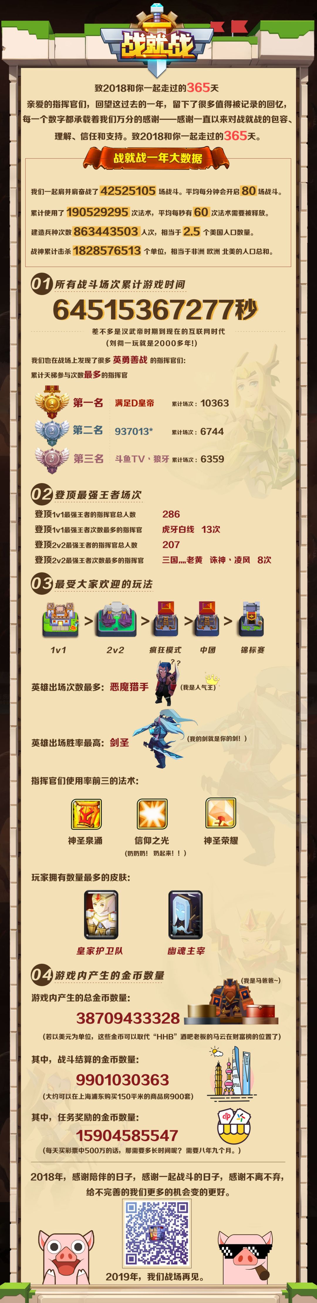 挥手告别2018,回望各位在《战就战》度过这一年中,留下很多值得被记录的回忆!每一个数字都标示着指挥官们在《战就战》留下的足迹。感谢一直支持我们的你们!正是因为有你们的存在才使《战就战》变得更加完善!2019年我们会继续前进,让我们来一起看下《战就战》大数据!