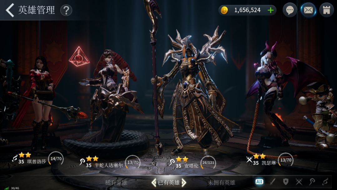 说实话,这个游戏真的不怎么需要氪金的,第一天,我在六个区都刷了一遍初始,最后只有第五区的出了一个稀有英雄券,选了个奥斯卡乐师,然后就一直玩五区的角色,开始的时候攒钻石两次十连抽,出了好多英雄券,然后都选了未拥有的英雄,完成拥有英雄任务得钻石另加刷副本等等得的钻石继续十连抽,总共玩了四天,稀有英雄总共有了两个,一个乐师,一个法师,其他英雄差不多都有了,只有六个英雄没有了,现在正在培养