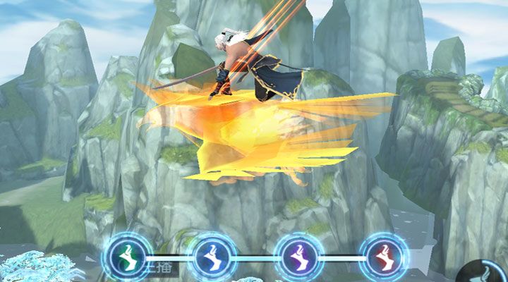 轻功系统是在进入西宁镇解救了陈长生和余人后就开启的技能,轻功一共分为四段,每点一下轻功按钮就会有一段飞行特效,四段轻功有着循序渐进的效果,而且根据所属门派的不同,这四段的特效也互不相同。