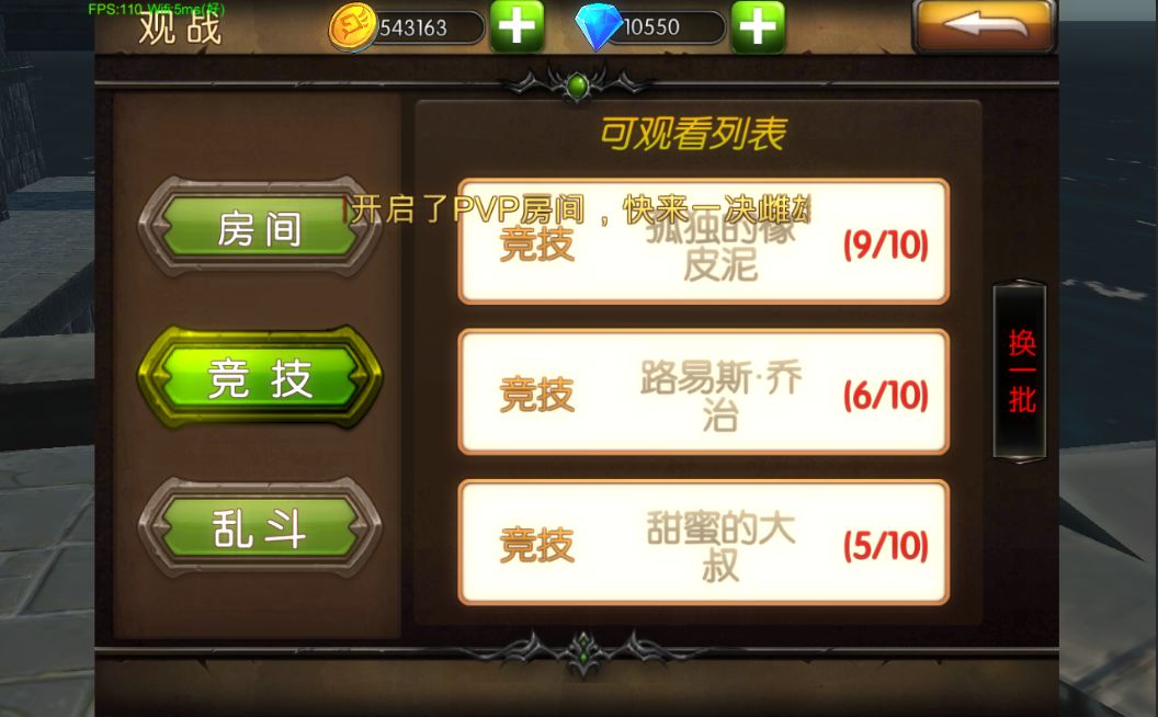 房间,竞技,乱斗,观战四大特色系统,实时竞技抢夺pk!