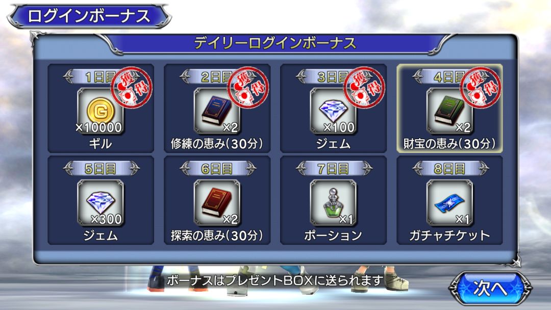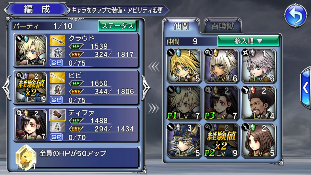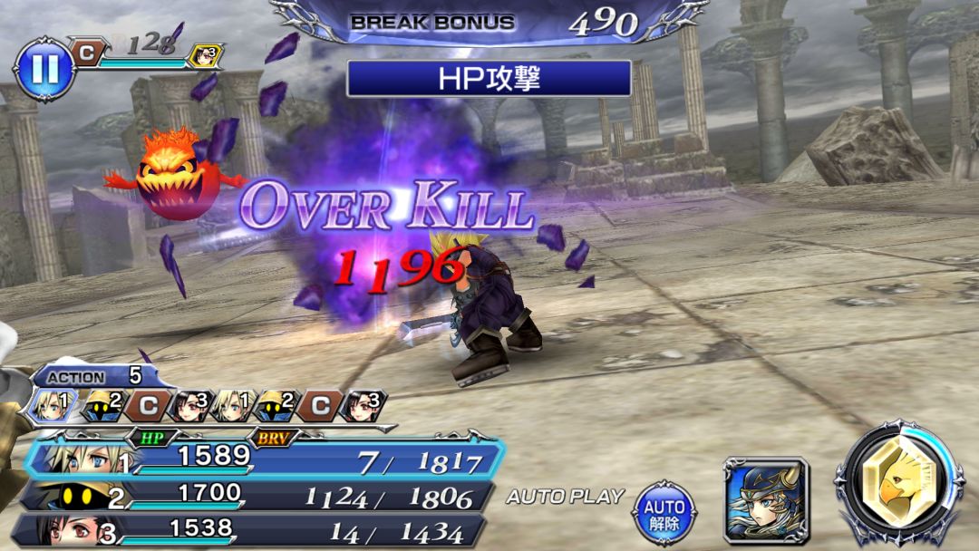 Japanese version. Make teams of heroes from the Final Fantasy games. Collect powerful equipment and battle using a turn based system