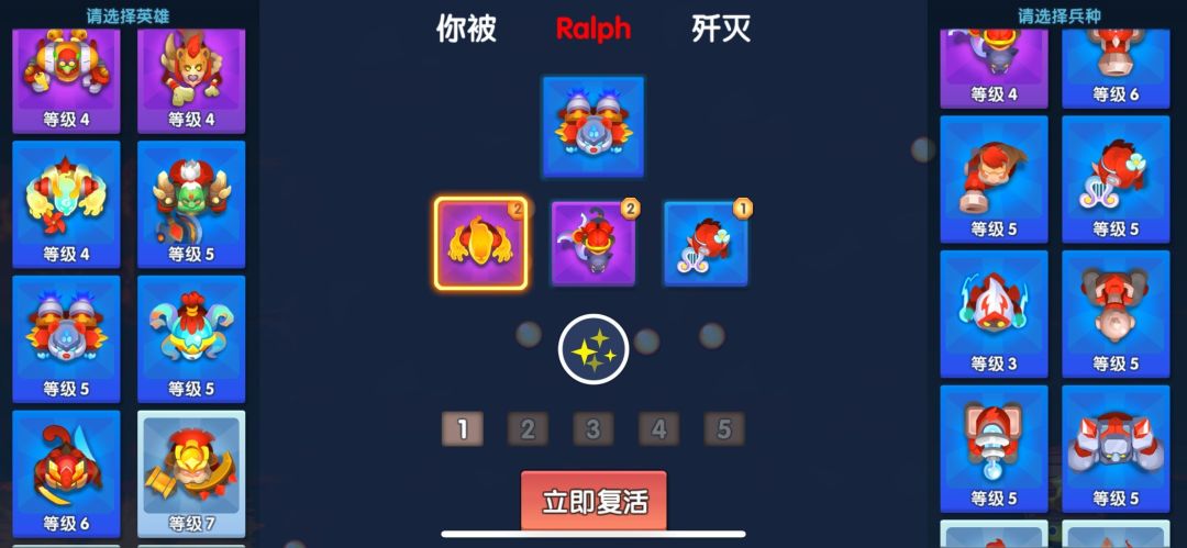 值得注意的是,游戏中需要时刻注意保护自己的英雄,因为英雄一旦战死则整支队伍都会被瞬间歼灭。只要英雄存活,我们就可以继续吃豆重新招募新的小兵。不过即使战败也没有关系,阵亡后可以重整旗鼓,选择合适的阵容再次上场,及时调整策略也是赢得胜利的关键!