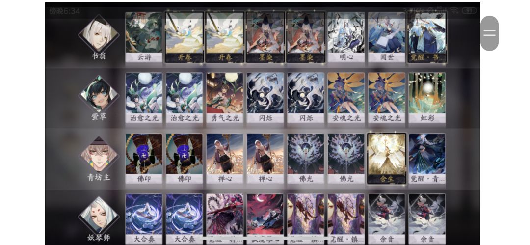 在s2的妖琴师余音被砍之后,许多过牌玩家就开始转型用座敷童子来代替妖琴师的位置了~但想必玩过的大家也都知道,座敷童子最大的问题就是不够稳定,前期25仔,后期假赛王~严重的时候会严重影响后期一回合的过牌情况(福运昌隆不给火~)所以选手在这个位置依然选择了用妖琴来担当大任~同时配上疯魔琴心,为自己的后期尽可能搏得轮次,而过牌流轮次的价值,我想就不用我说了吧~
