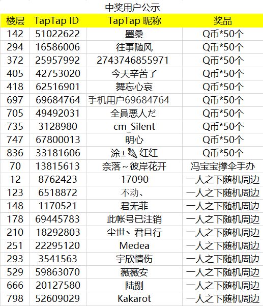 奖品将会在收集齐全部中奖用户信息后统一发出噢~还请员工们耐心等待!感谢员工们对《一人之下》手游的支持!