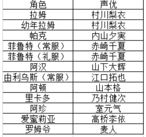 本次测试实装了部分声优,一部分声优大大因为档期或后期问题,还在录制和录入过程中。不过所有声优录制工作即将完成,图示是本次测试版本实装声优介绍图。明天就要出发了丫,预祝大大在异世界玩的开心,一路顺风!