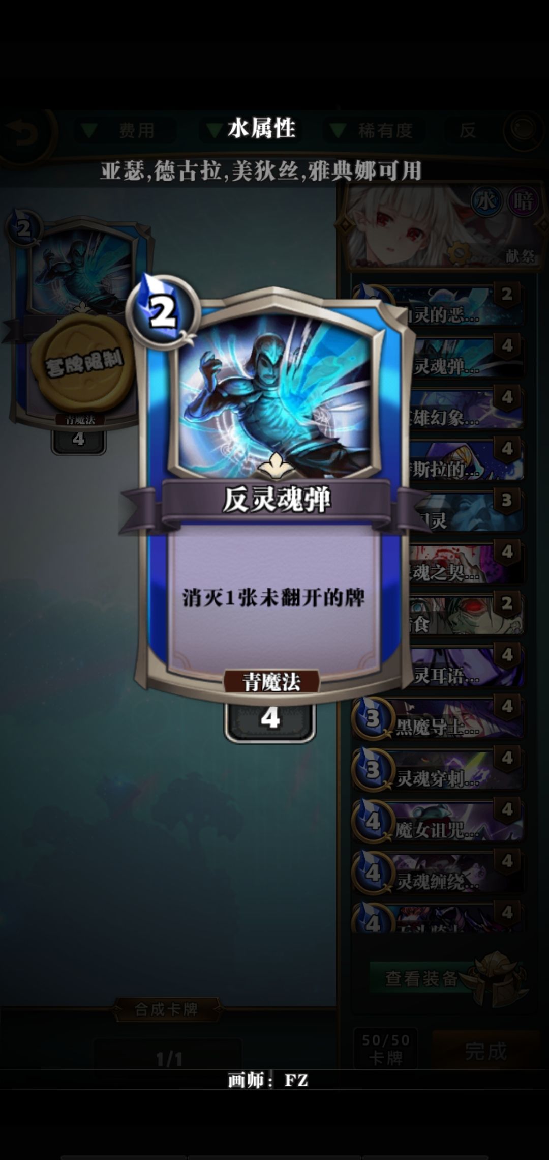 【反灵魂蛋】:蓝色的特色之一,如其名很多人都说这卡很厉害,效果是消灭一张非同位盖牌, 推荐使用方法 找机会让对手放松警惕或者在铺场,斩杀线,预判防止对面6号位置掀桌(╯‵□′)╯︵┻━┻ 【 组合技】辅助卡【仙灵恶戏】可以放在3号位置或者4号位置 【缺点】:需要敌方场上伤害不能太高,否则生命值会进一步受到威胁,一号位生效法术或生物,多个盖牌随机一个赌运时刻,在坐的非洲人小心了哦 【友情提示】【技巧】:用来作为移动卡牌触发消灭盖牌效果 。 【提示】:多次组合根据组合卡不同效果发生微妙改变
