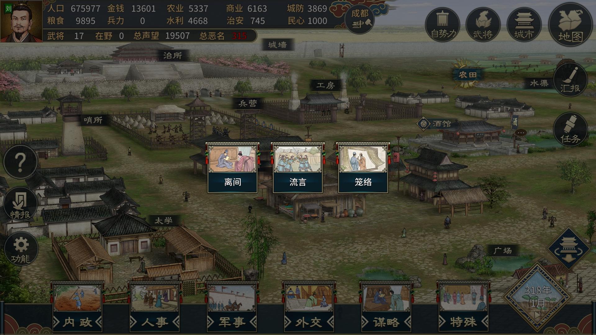2.谋略系统,又一个占内政界面,没卵用的系统,难成功不说,成功了也没任何有用的效果,没任何有用的效果,没任何有用的效果
