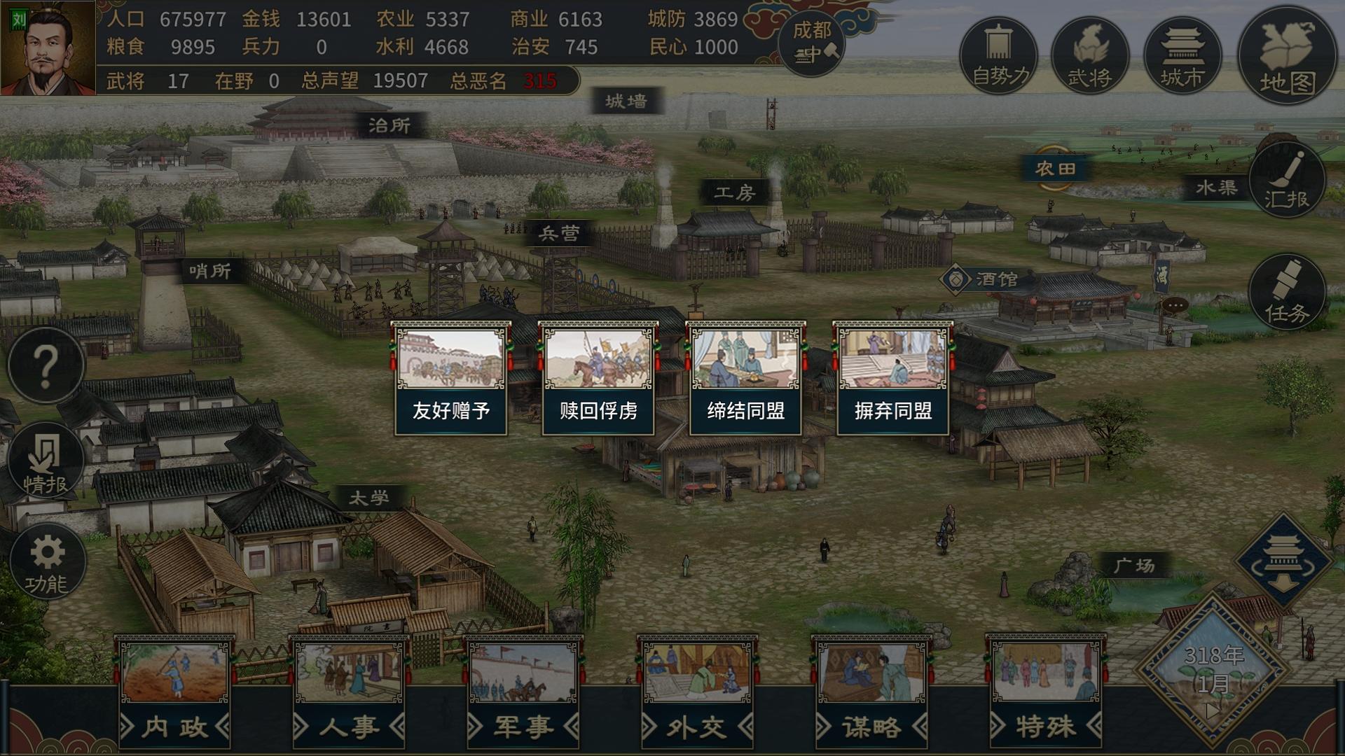 1.1 结盟,根本不存在的,这个游戏里,电脑的第一目标就是围殴玩家,根本不会和你结盟,玩了N多盘极难,简易,没见过愿意和你结盟的,除非你用编辑器强制和电脑结盟。