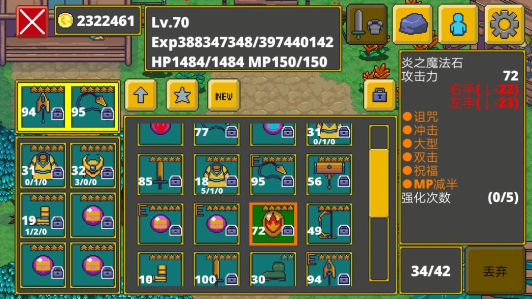 最好属性:Mp减半+双击+轻快+诅咒