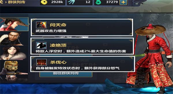群侠心法从一测开始就有,这次只是更换了升级方式,将侠客的升级分为四大境界,获得群侠时是一星,解锁全部心法就会变成四星侠客,心法解锁后的群侠强了不知一个层次。心法解锁需要相对应的群侠碎片,第一个心法需要50碎片,第二个100碎片,第三个150碎片。