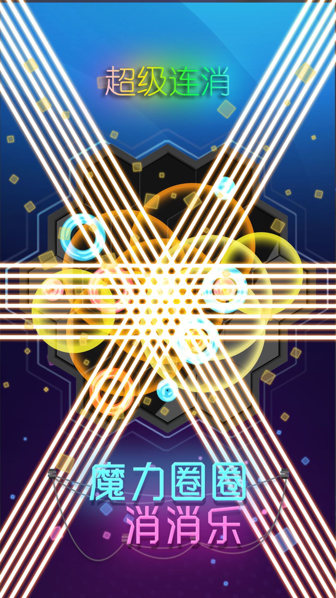 这是一款以三消为核心玩法的休闲游戏,画面整体沿用了《粉碎圈圈》的核心思路,采用了霓虹灯管风格,消除特效非常爽快!
