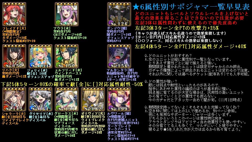 supporter和jammer(主加buff&debuff的角色推荐)第一行有不限属性的buff,推荐必练。