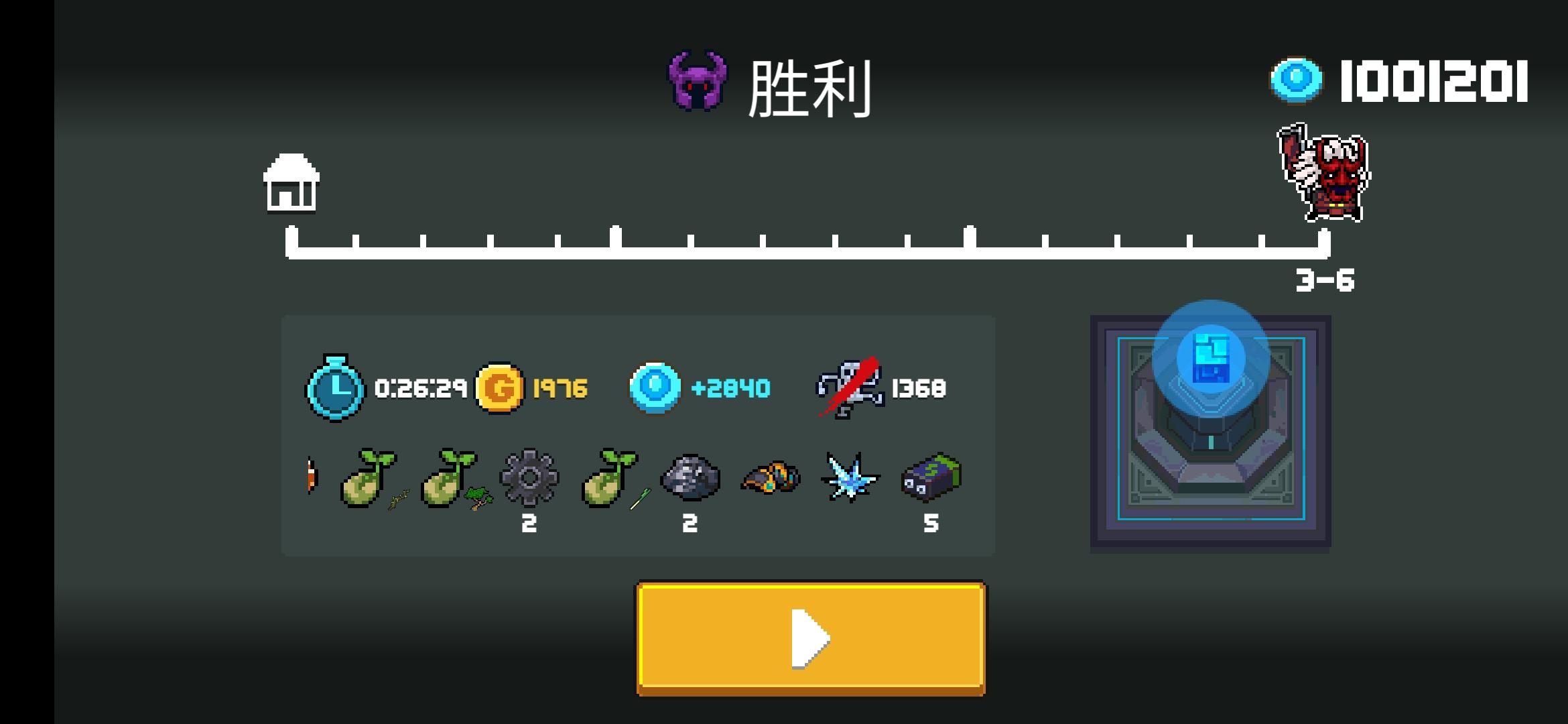 这是打完之后,因为金币和杀怪数量是目前见过最高的,所以就截了个图,然而就在我领完奖励准备再刷一次的时候发现今天的挑战因子其实是怪物子弹加速、怪物加速、好运气、CD减半。