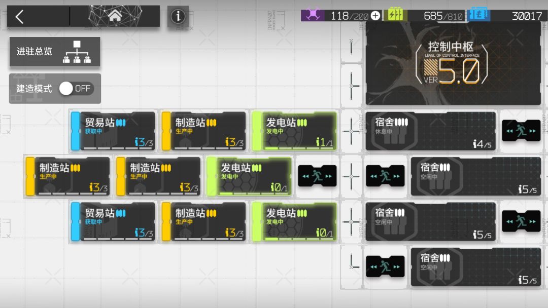 1间3级贸易站/制造站消耗电量60点,6间消耗360点