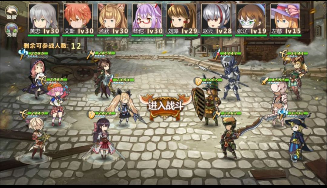 配置:上阵的都是30级,刘关张艾斯黄忠五武器,其他都是四武器。