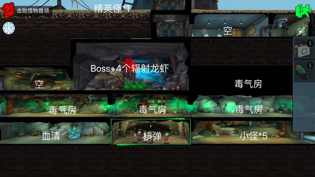 此关卡要注意的是有辐射小怪及有辐射的房间所以建议携带去辐射治疗!