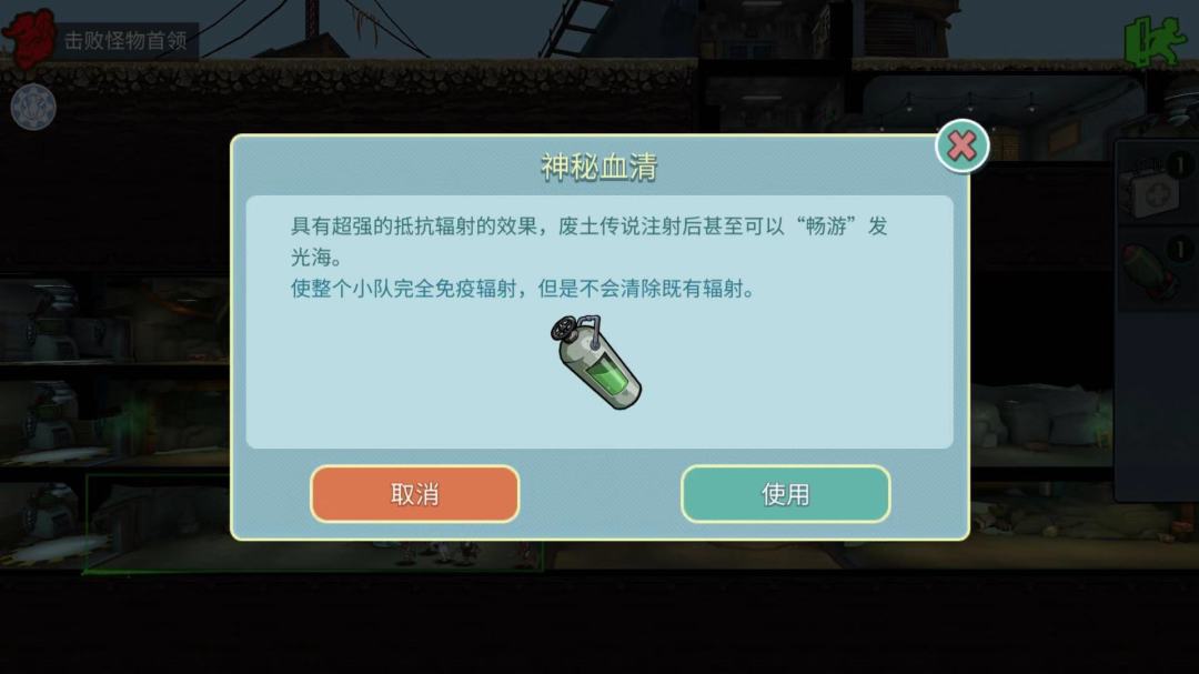 后面2个房间我们可以捡到一颗核弹和神秘血清这样我们就免疫辐射了,传送上去揍Boss去.