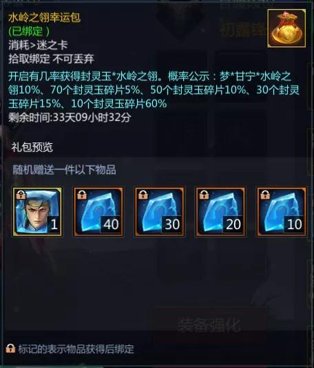 除了通过梦*甘宁礼包来获得水岭之翎换装外,大家也可通过购买价格更低的水岭之翎礼包进行抽奖,也可以获得换装哦。