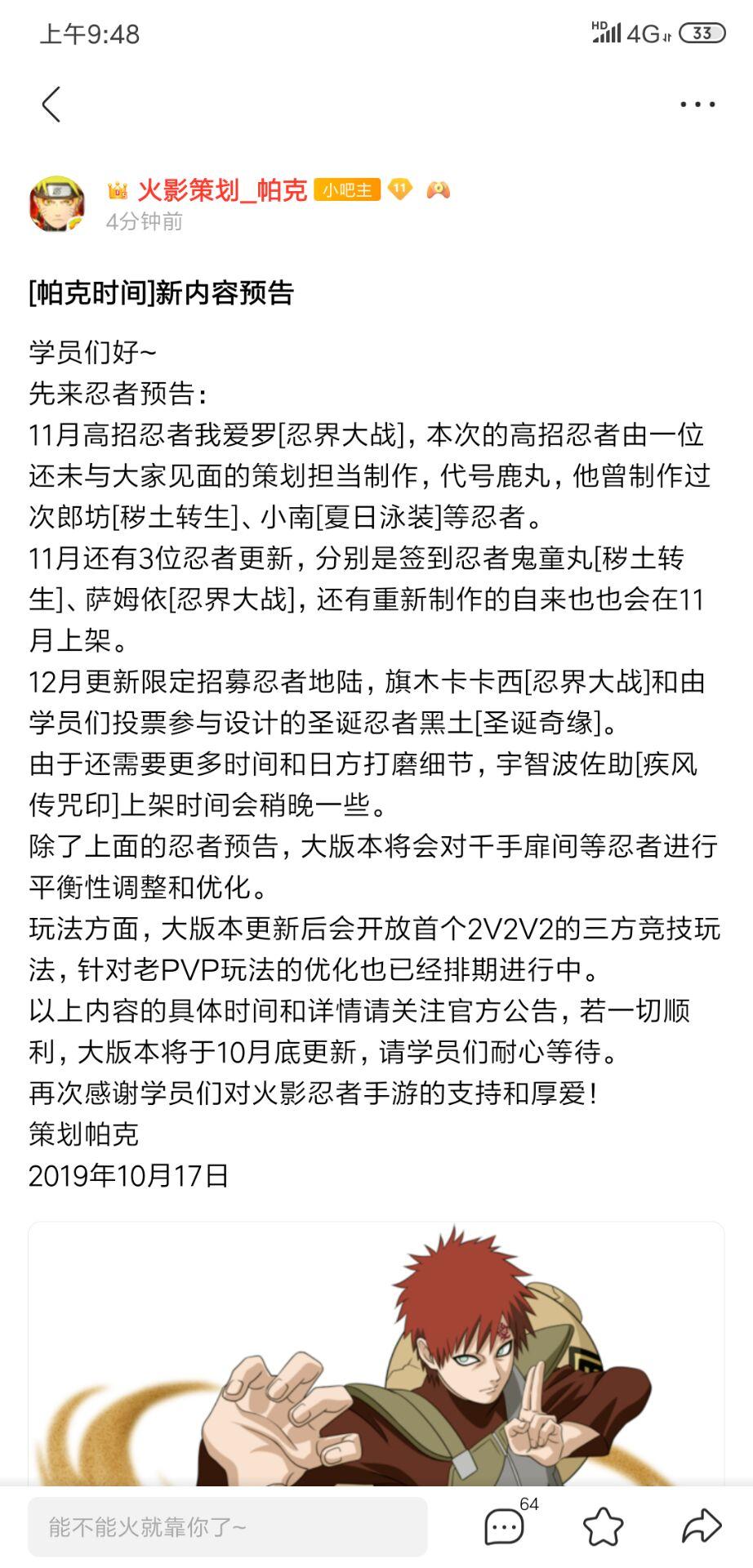 新忍者上架,秽土罗志祥会不会给各位签到零氪玩家更好的体验?(说个题外话,c忍请买个少自,因为这玩意我真的不承认他是个c)。忍战萨摩伊登场,嘛,应该是个b忍,娱乐就行。