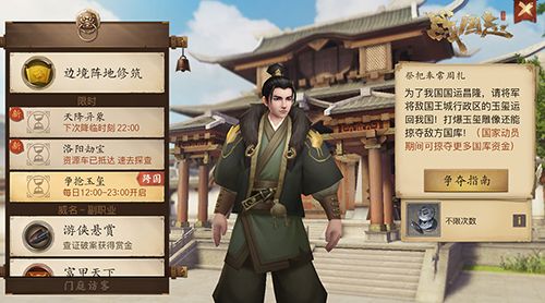 每日12:00-23:00,各位将军可前往敌国打爆玉玺雕像,运回本国安放。打爆玉玺雕像会使敌国损失大量国库资金,同时还将掉落大量银两,各位将军可任意拾取。由于玉玺雕像坐落在敌国王城行政区,因此建议指挥带领足够多的人马,前往敌国王城,才能顺利在敌军的严密防守中击破雕像。