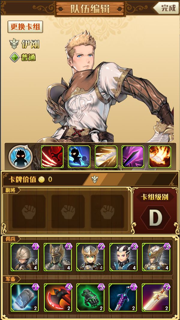 佣兵选择上。荆棘骑士利用嘲讽来阻挡和吸引敌方的进攻(很可靠的小青年啊o(*≧▽≦)ツ);猎狐参谋能增加神器的出现几率;龙葵骑士提供一定的恢复能力强化伊刚小青年的生存能力;小费用的绿藤长弓手和范围攻击的鹫剑士来增加解场能力。