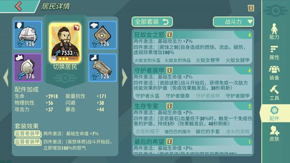 我把配件作为一个资源来讲,是因为配件真的是这个游戏里最重要的东西,有的四件特效超级强大,有和没有就是质变。