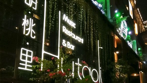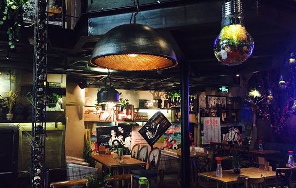 大面的木质陈列架,细钢条做成的红酒架,不经意散落在角落,植物、老木头、水泥、钢板等元素,点缀了缝纫机桌脚,旧书烘托出这里的质朴,一切仿佛来到八十年代的旧电影,享受着音乐、美酒、美食的三重极致,这就是本次玩家见面会的举办地点——重庆鎏嘉码头胡桃里音乐酒馆。