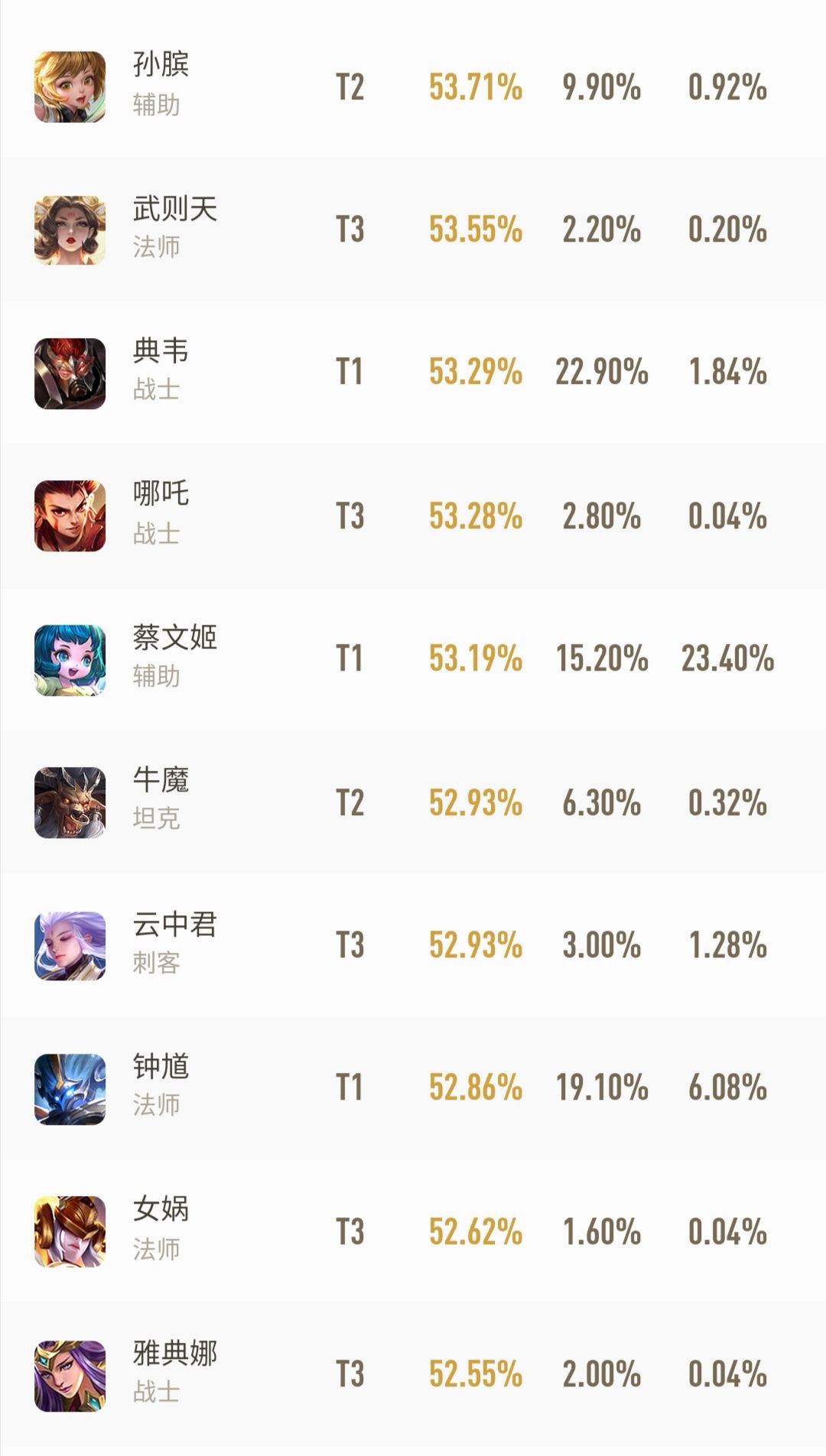 新的一周里,孙膑一往无前冲击第一成功,武则天重归巅峰到达第二,黄忠跌落神坛,雅典娜取代黄忠。