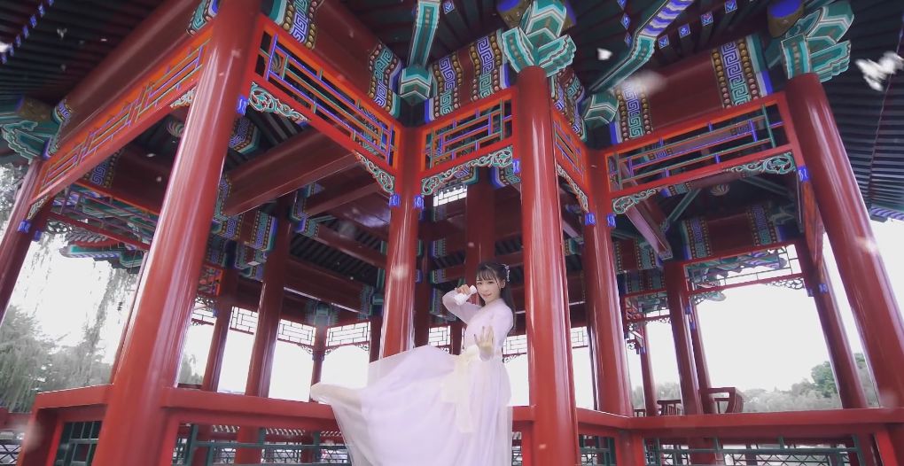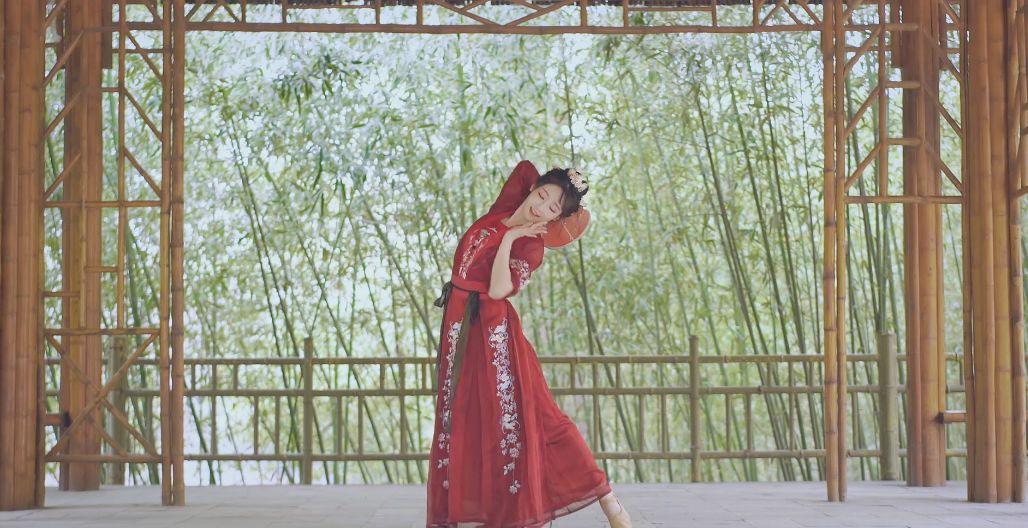 在上面的《春水积木》古典舞MV中,无论从跳舞的身段、手势、甚至细节到每一处转脚、甩袖、都可以说跳的无比到位,舞出了古典的唯美风韵。