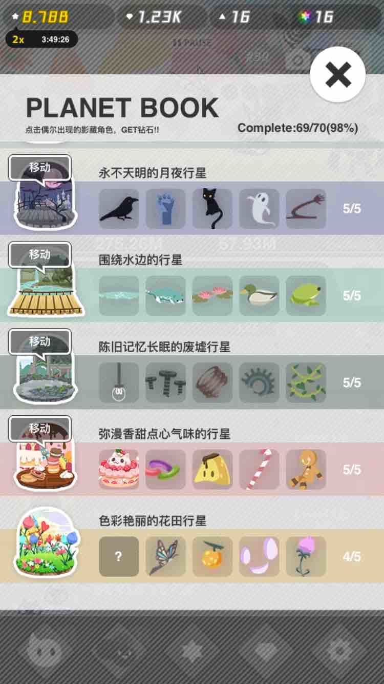 就这样了,最后一个星球的彩虹懒得等了。发完删游戏。最后星球的蝴蝶在地图左上方的花苞上面。