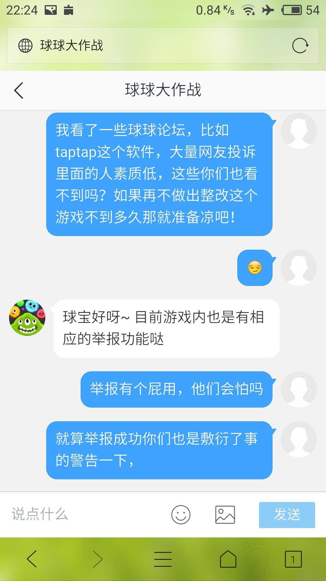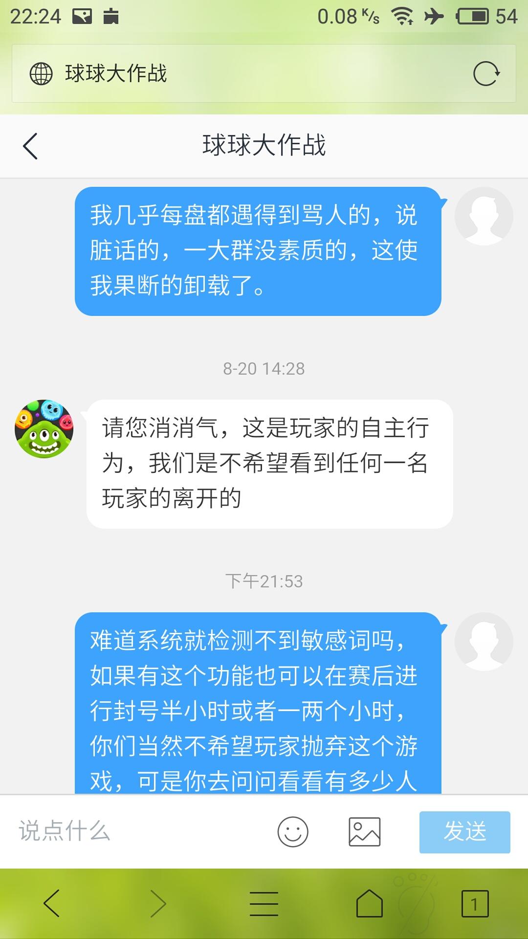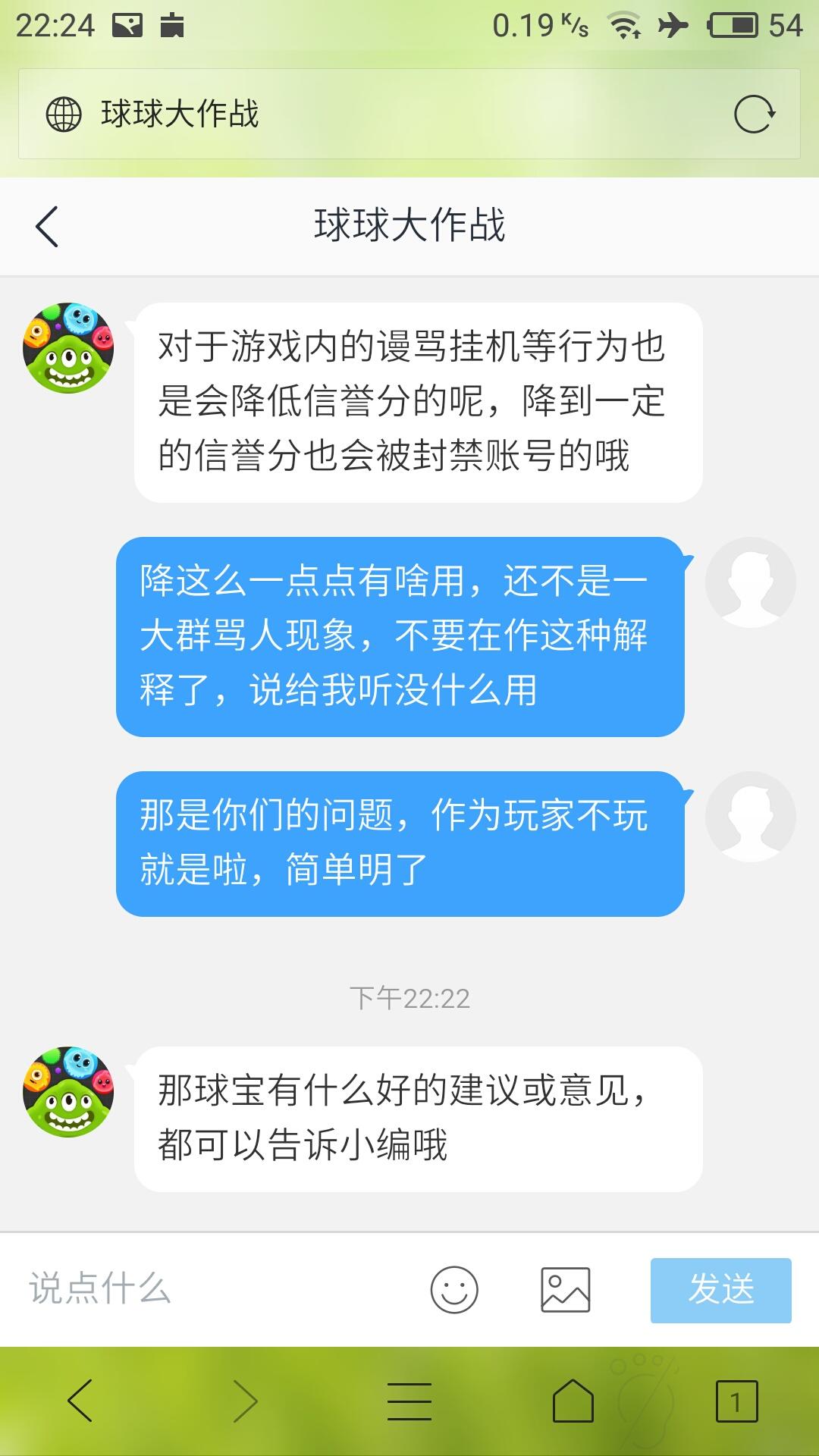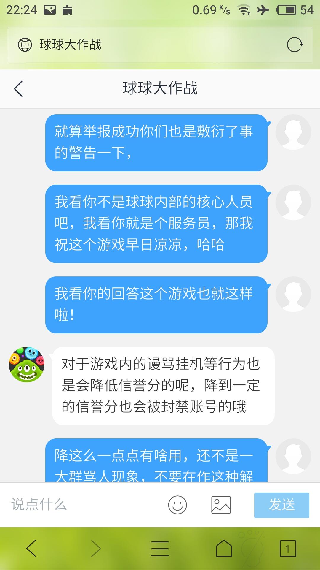 大家看看我和球球客服的聊天记录