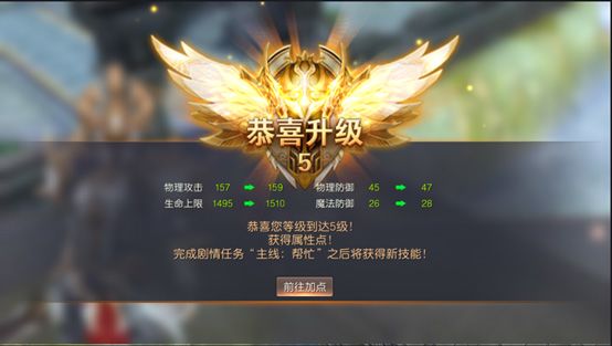 以后每升5级,系统都会智能弹出引导窗口,提醒玩家可进行加点,虽然每升一级都可以自行前往加点;