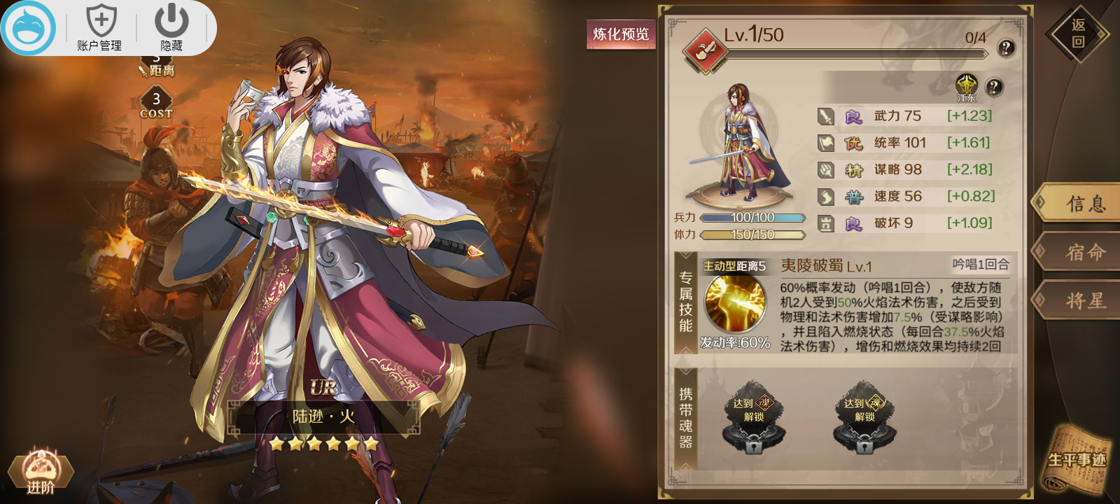 3.全火系,全谋士的阵容可以加层相当高的属性,目前鲁肃和吕蒙没有出场,相当期待组成一个羁绊阵容。