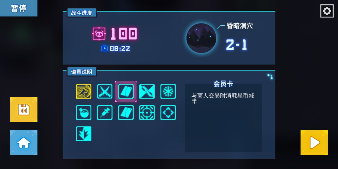 我每次开局自带一个技能加上我上局刚解锁的技能,然后就有了2张会员卡