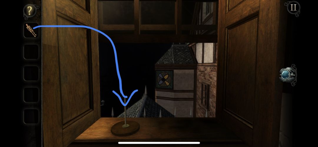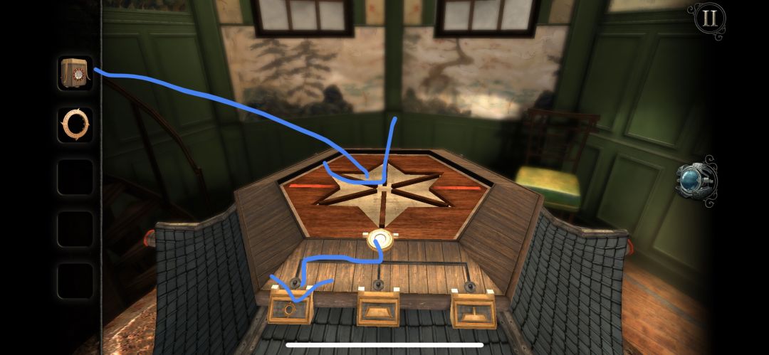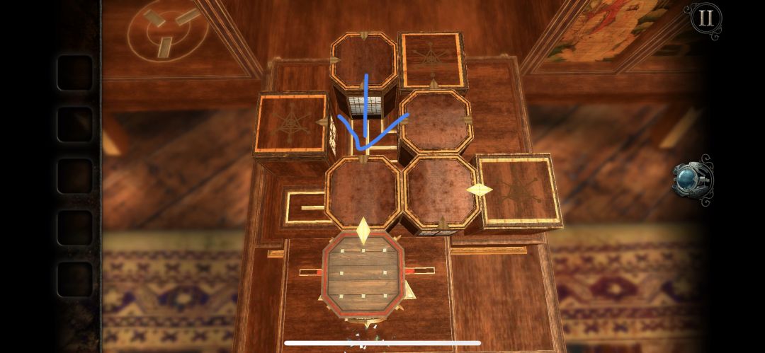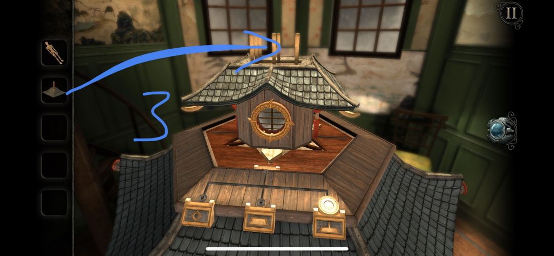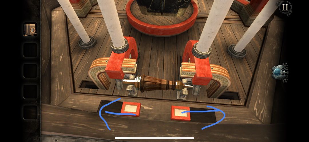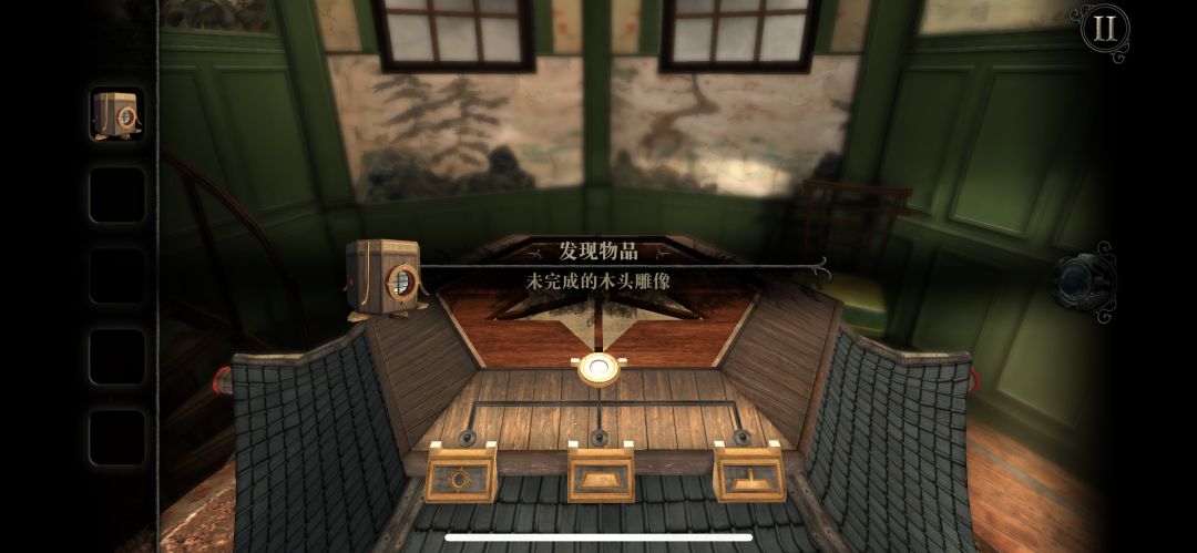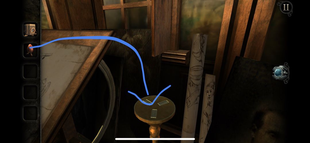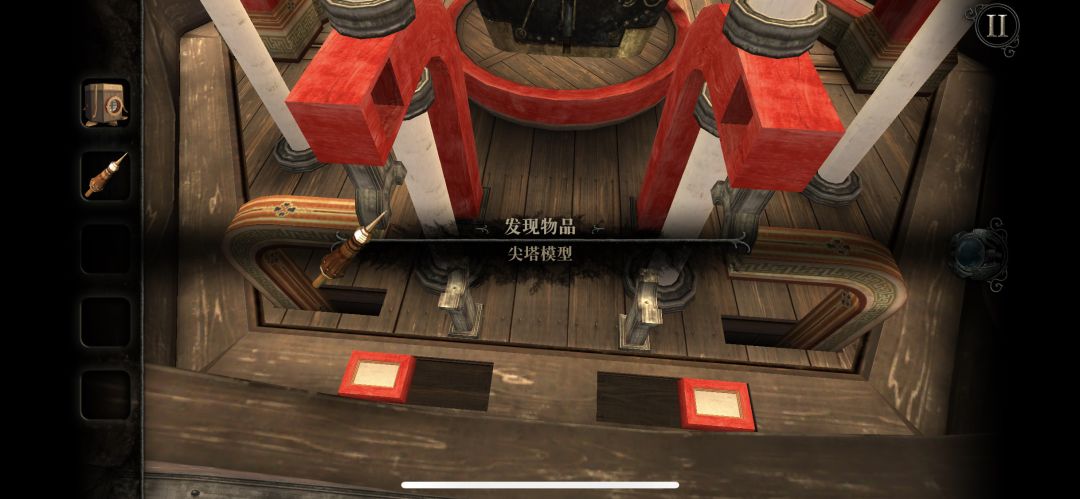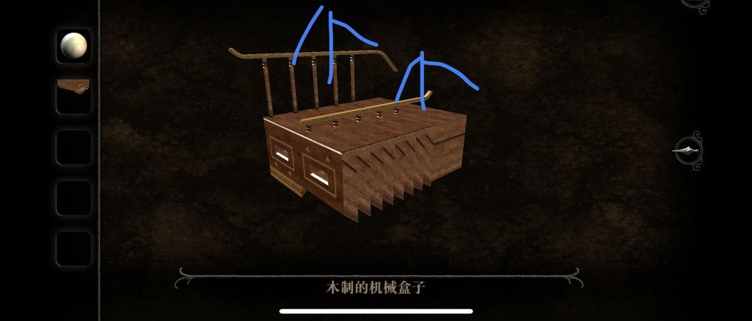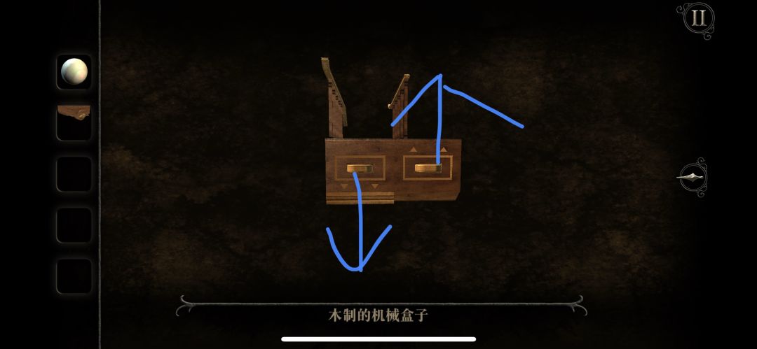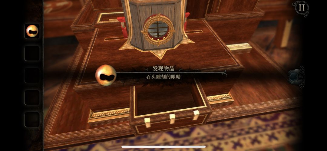 来到桌子上塔顶 把木头雕像放上去 将滑块滑到圆环标志