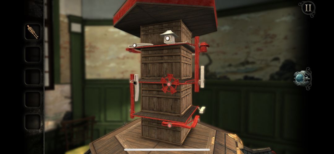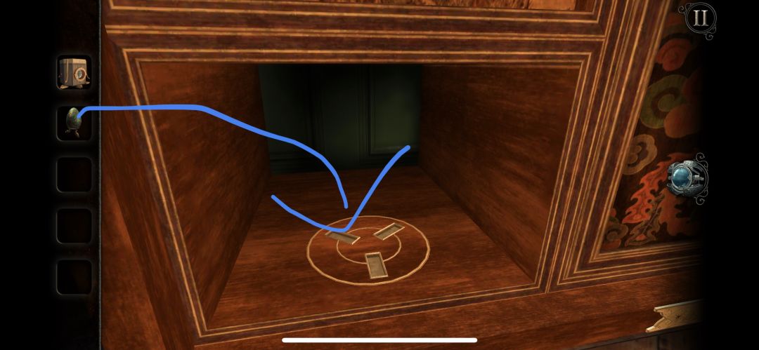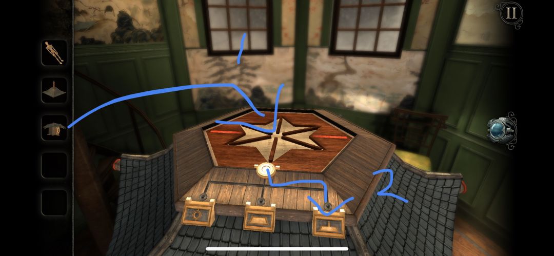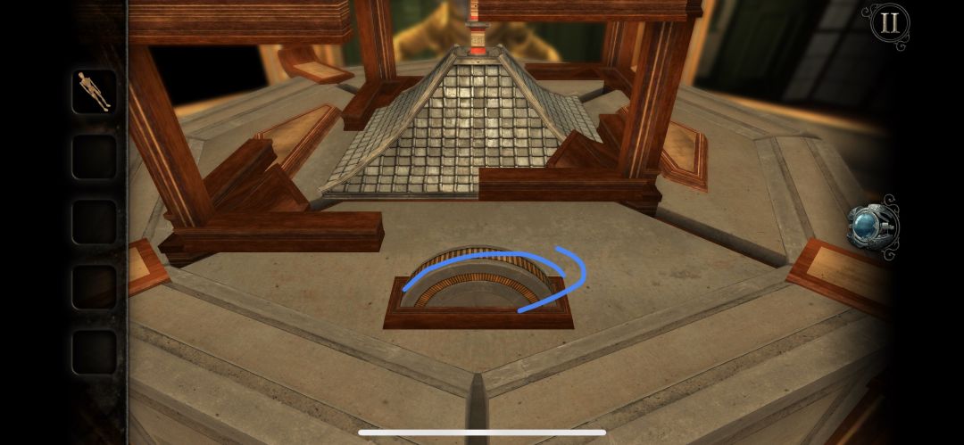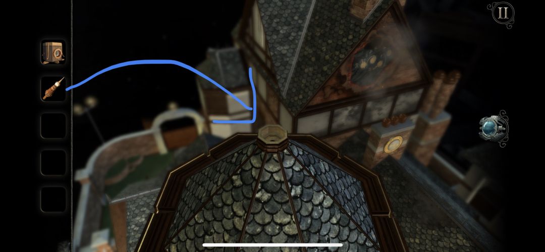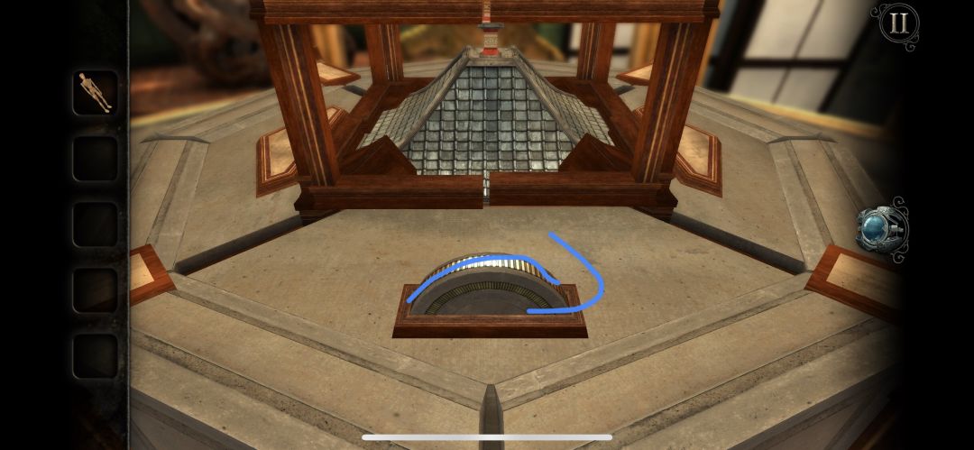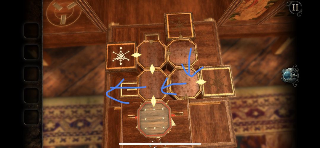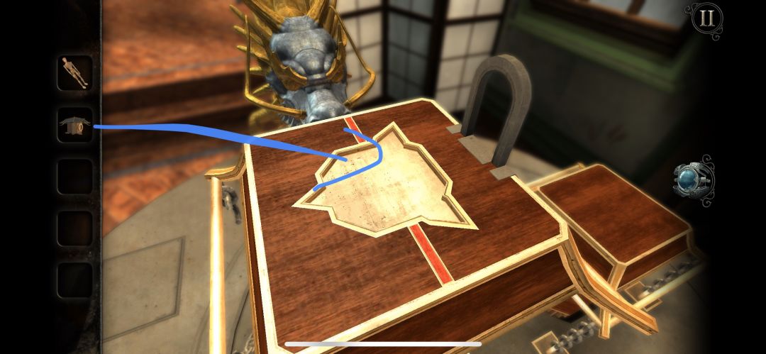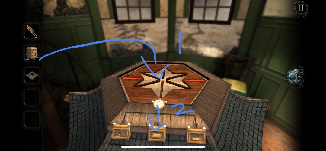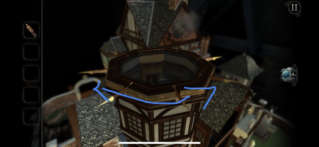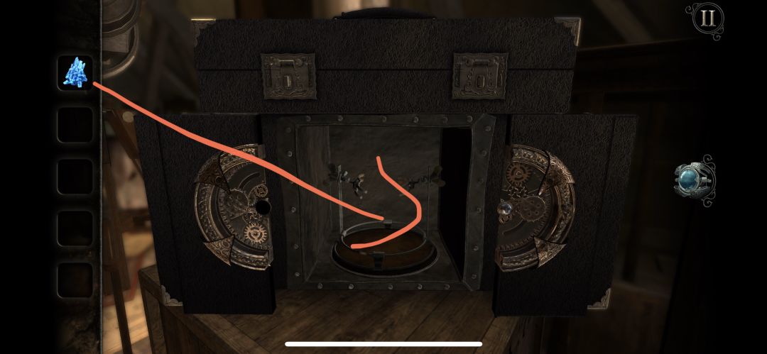 来到桌子上塔顶 把木头雕像放上去 将滑块滑到圆环标志