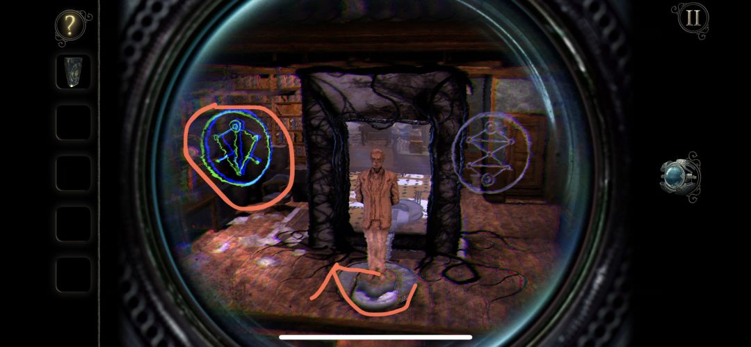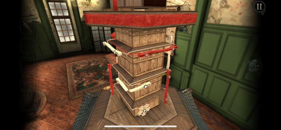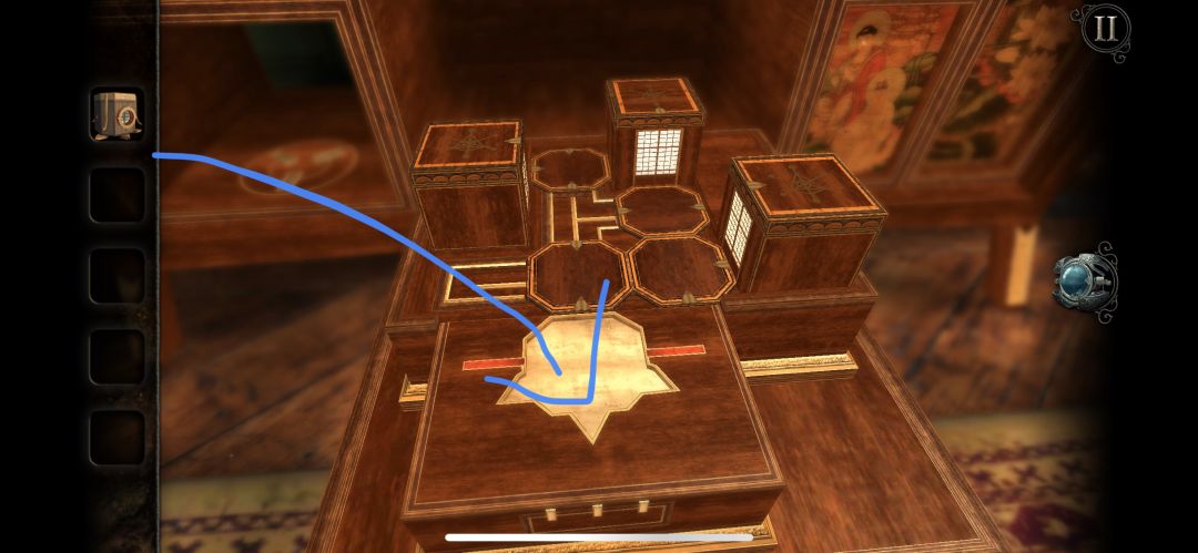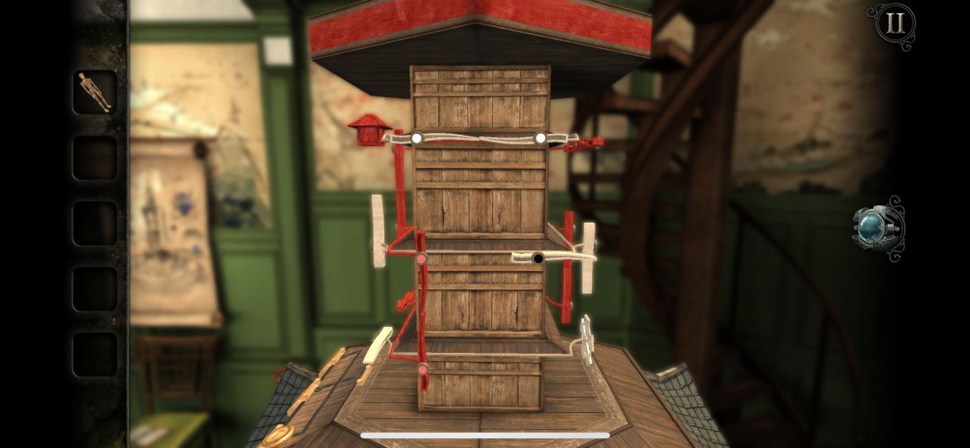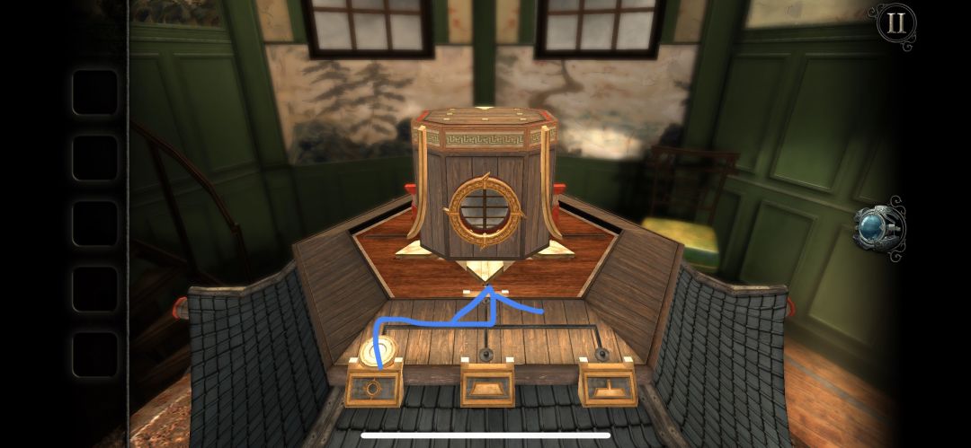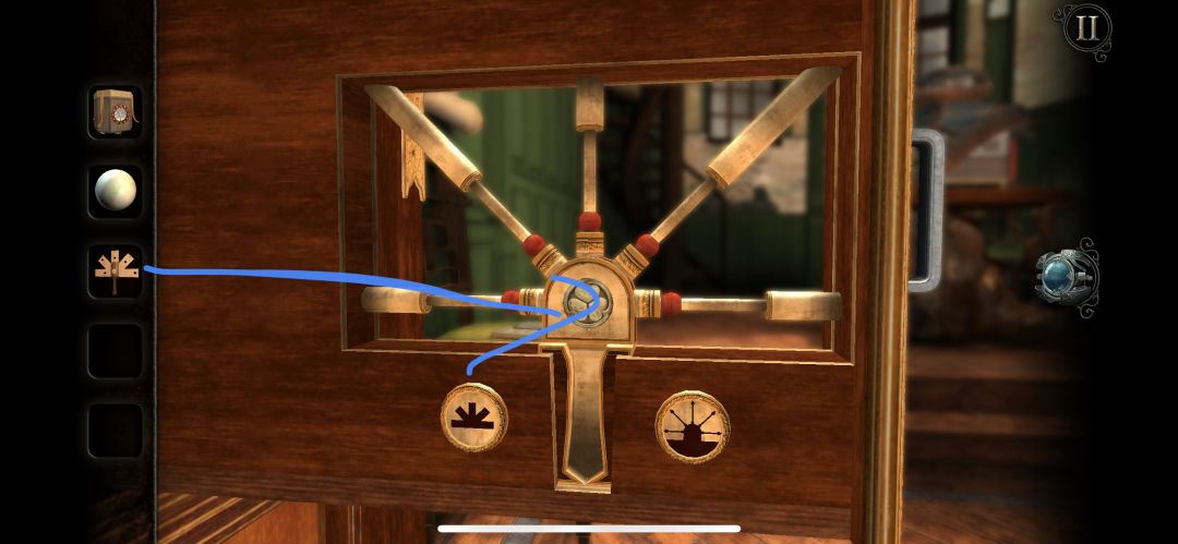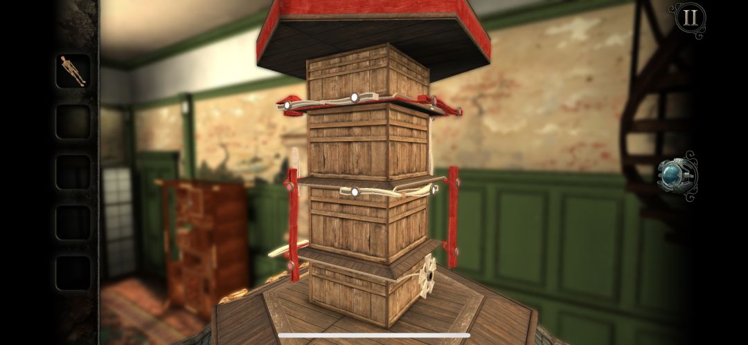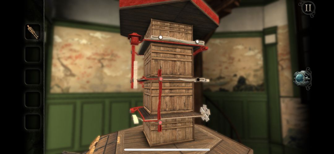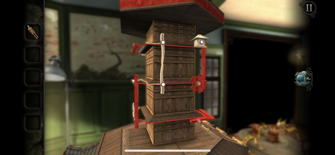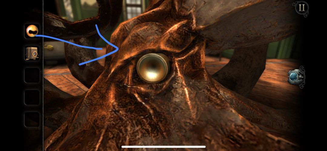 来到桌子上塔顶 把木头雕像放上去 将滑块滑到圆环标志