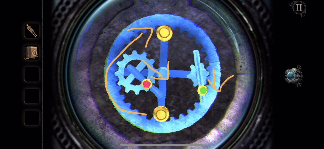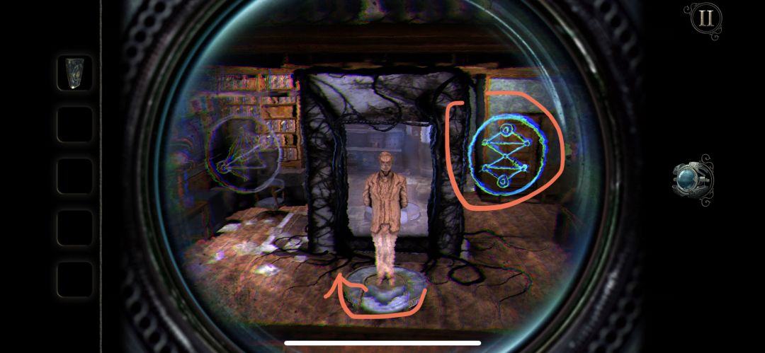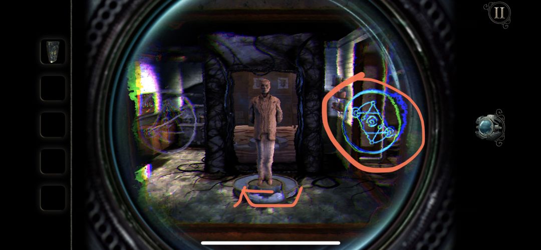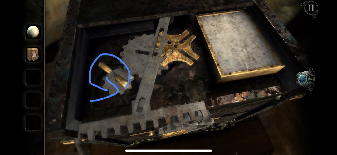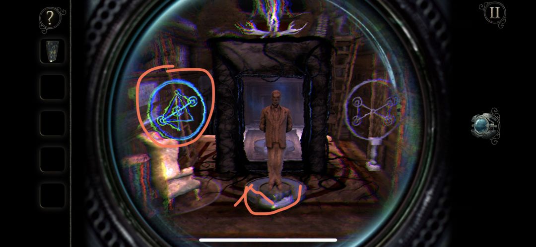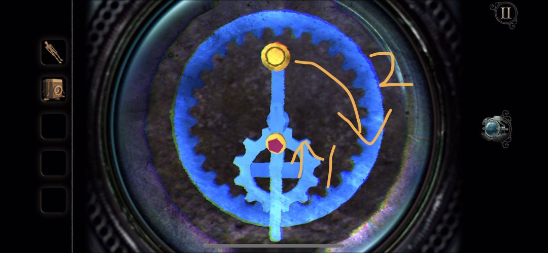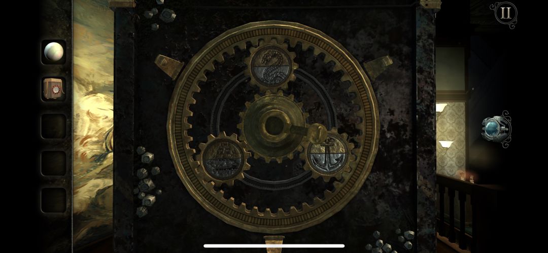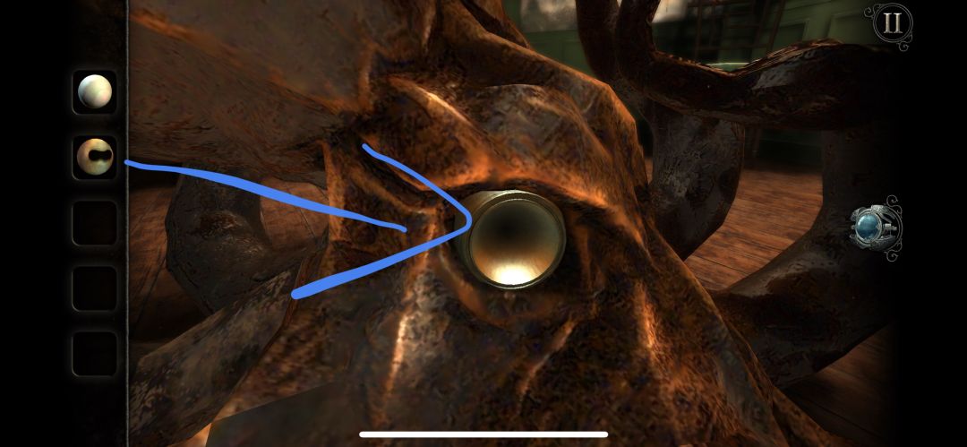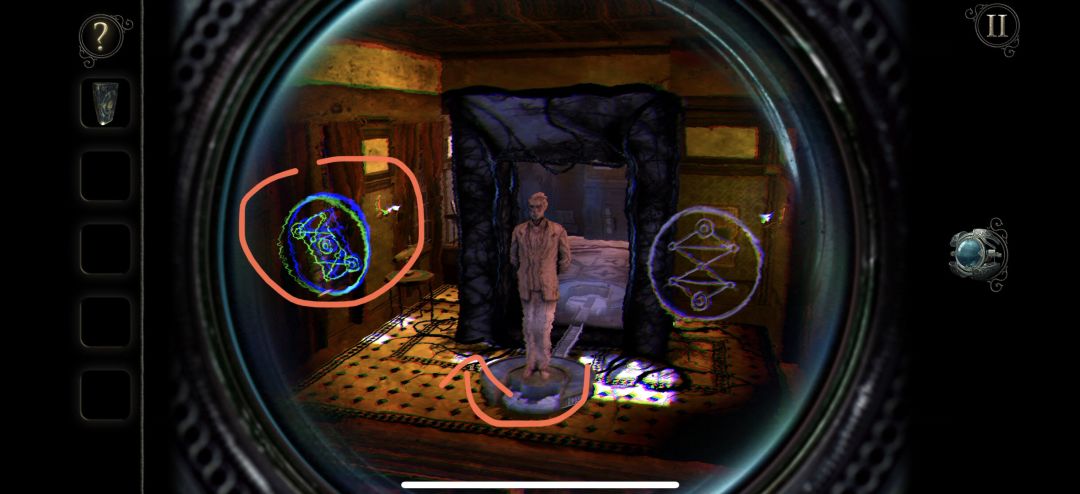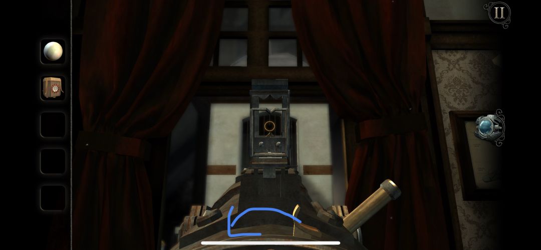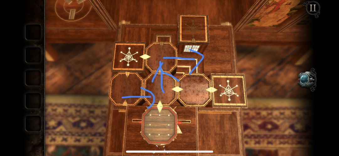 来到桌子上塔顶 把木头雕像放上去 将滑块滑到圆环标志