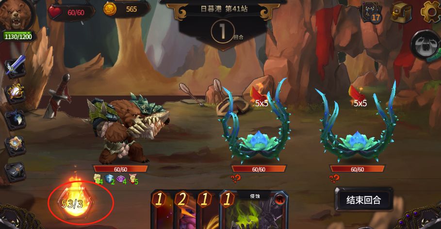 先解释一下,这个打法要力求一轮就结束战斗,因为长剑的作用只在第一轮有效,这也是为了减少卡牌组合的难度,这样最简单。