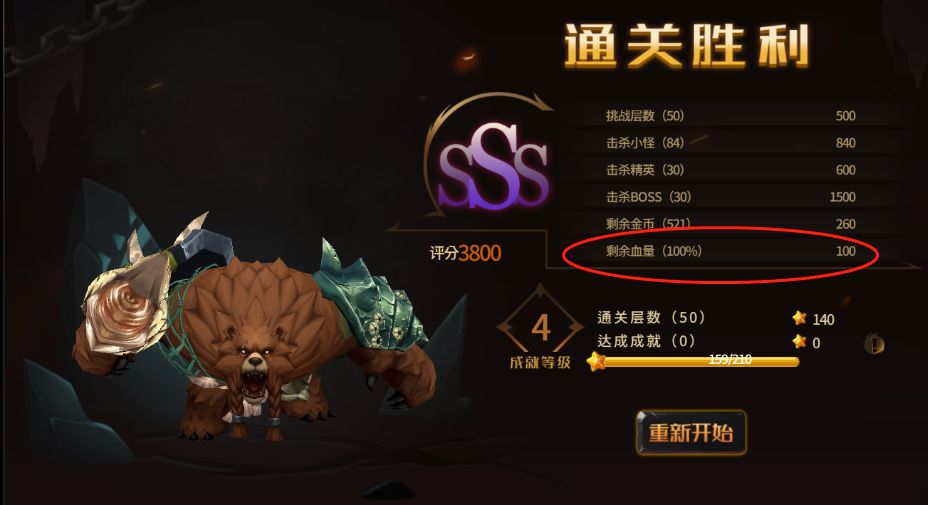 2、无伤过关真的爽,离氪金玩家最近的一次。