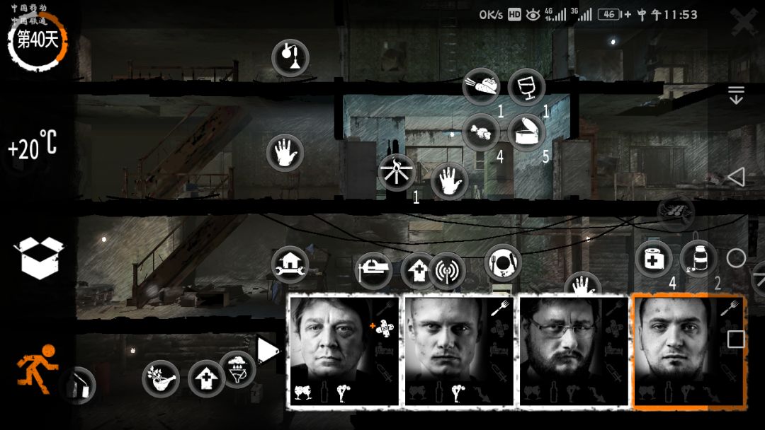 3.强壮但缓慢 的人物是装载量最大(17格),但是人物行走,奔跑都是非常慢